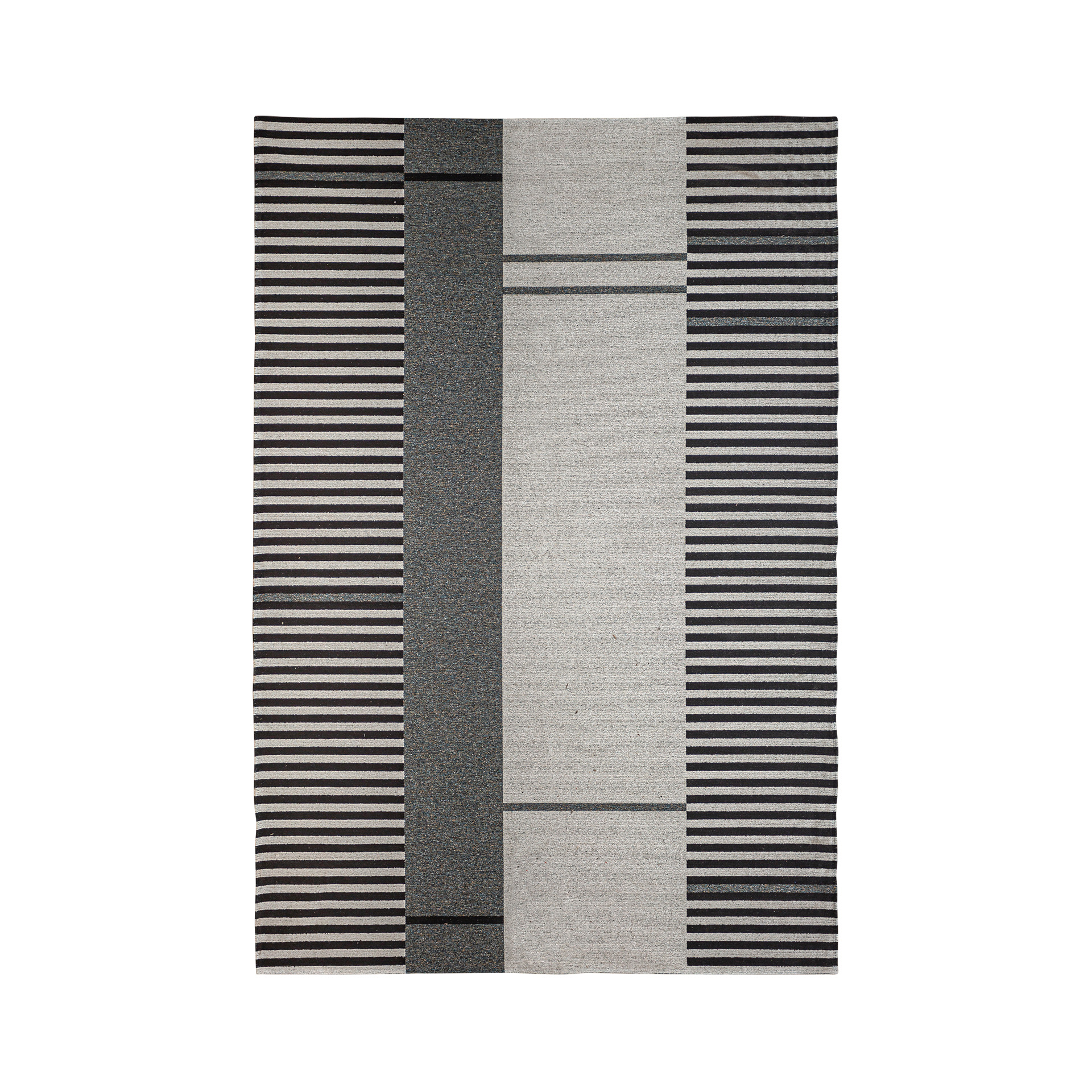 Alfombra rectangular jana de estilo contemporáneo, fabricado en polipropileno reciclado en color beige, combinado con poliéster en color negro y algodón.