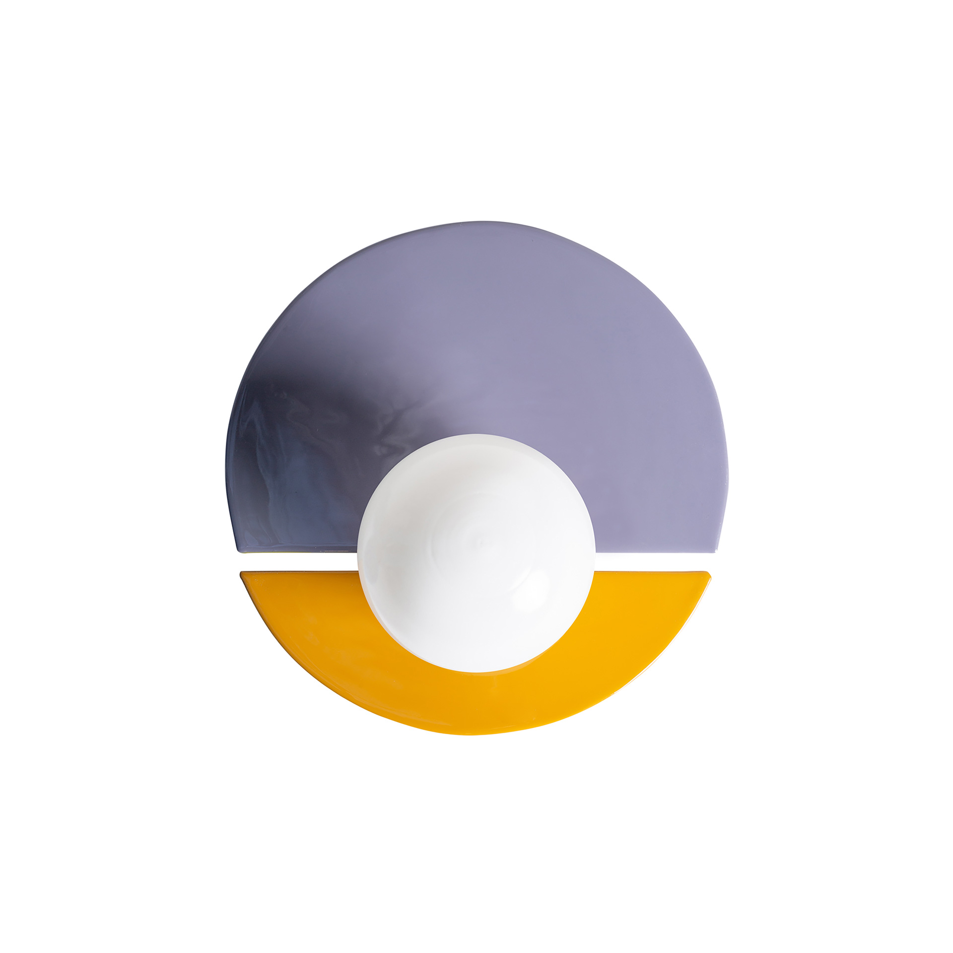 Aplique Niza de estilo moderno, fabricado en hierro en color oro, combinado con vidrio en color azul petroleo en color ocre.