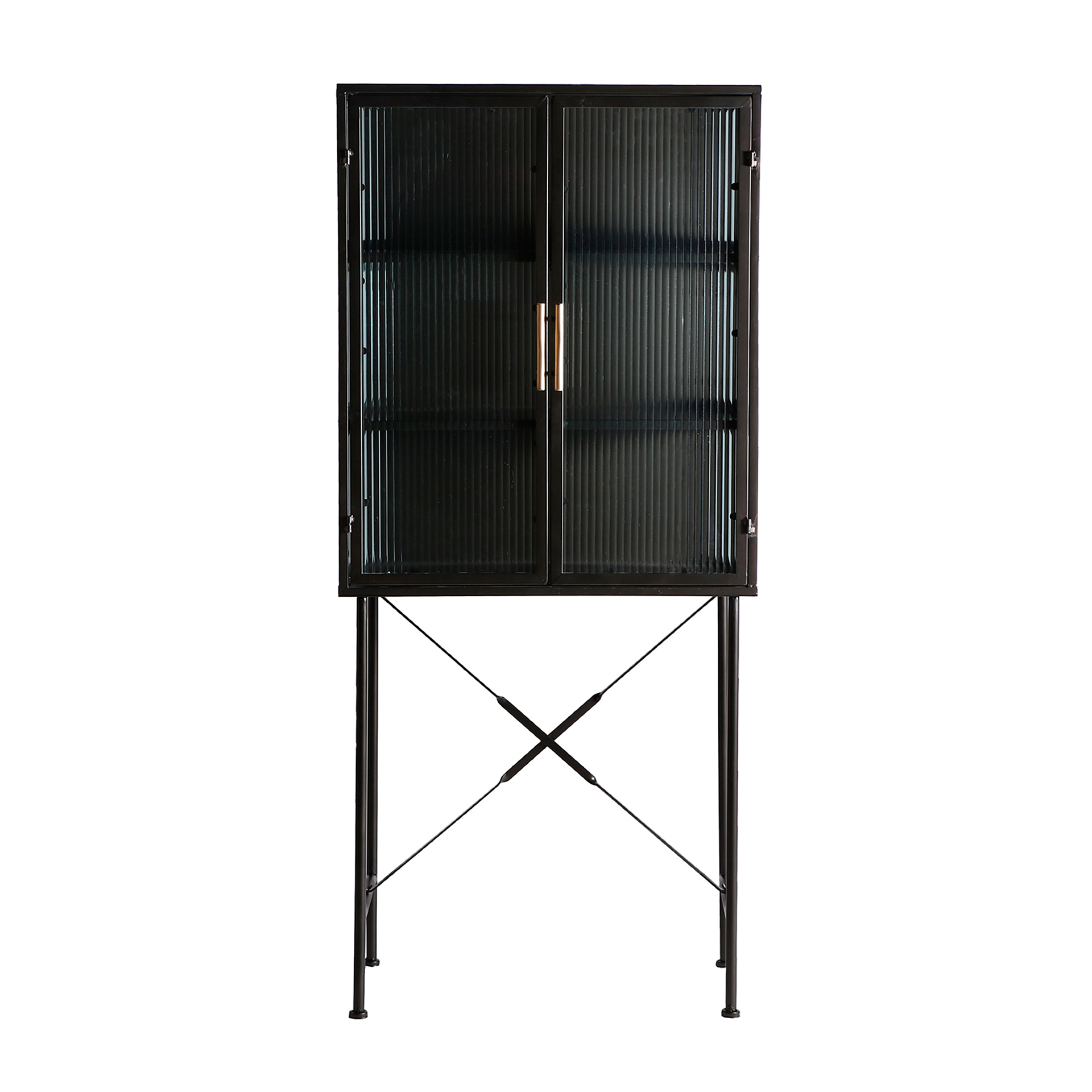 Armario rectangular hussard de estilo industrial, fabricado en hierro en color negro, combinado con vidrio. Producto desmontable.