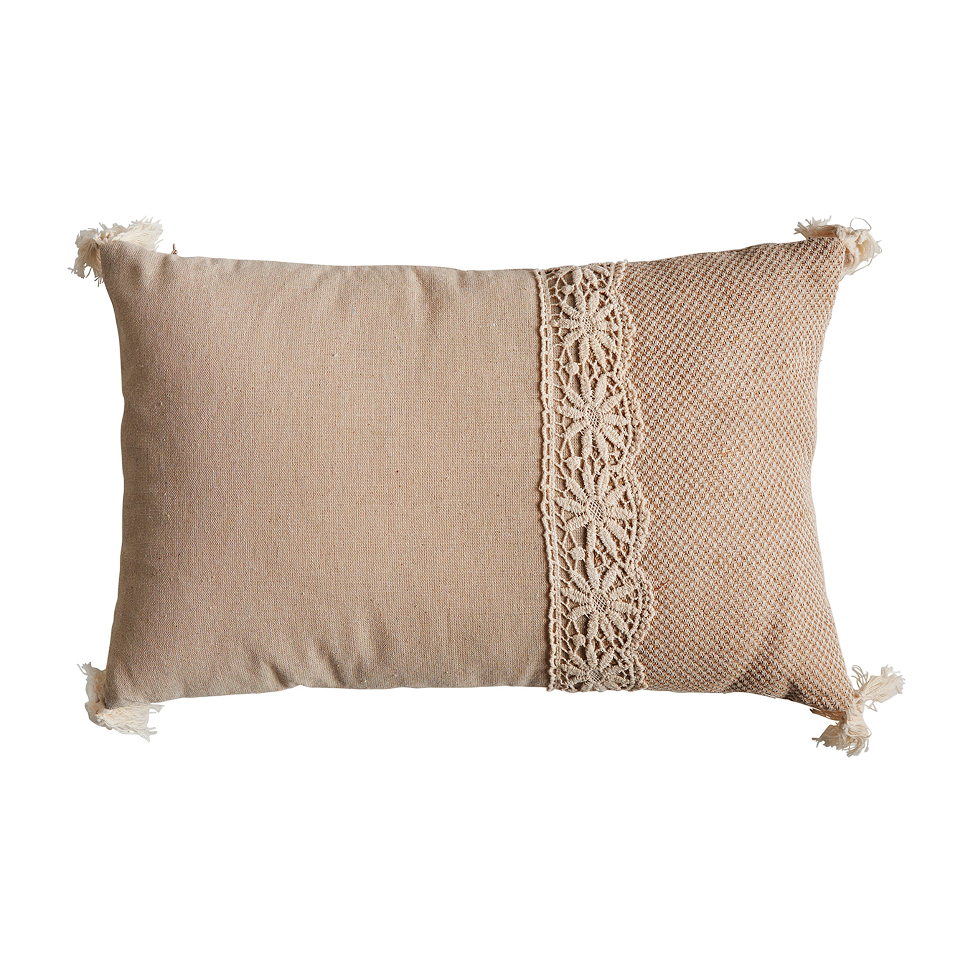 Cojín rectangular tiker de estilo contemporáneo, fabricado en poliéster en color beige con acabado bordado, combinado con algodón. Producto desenfundable.