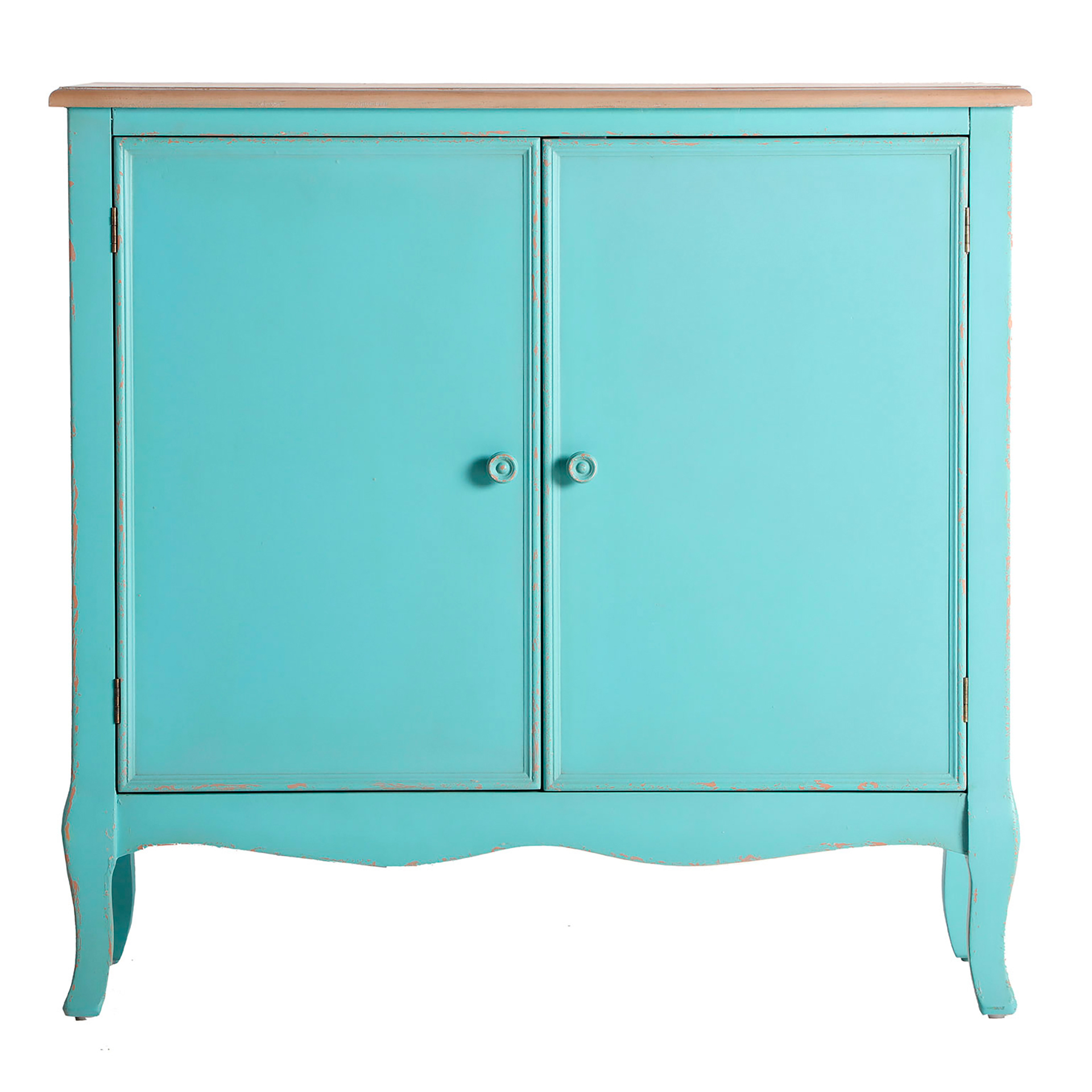 Consola cuadrada leiden de estilo kitsh, fabricado en madera de abeto en color azul, combinado con madera dm en color marrón claro.