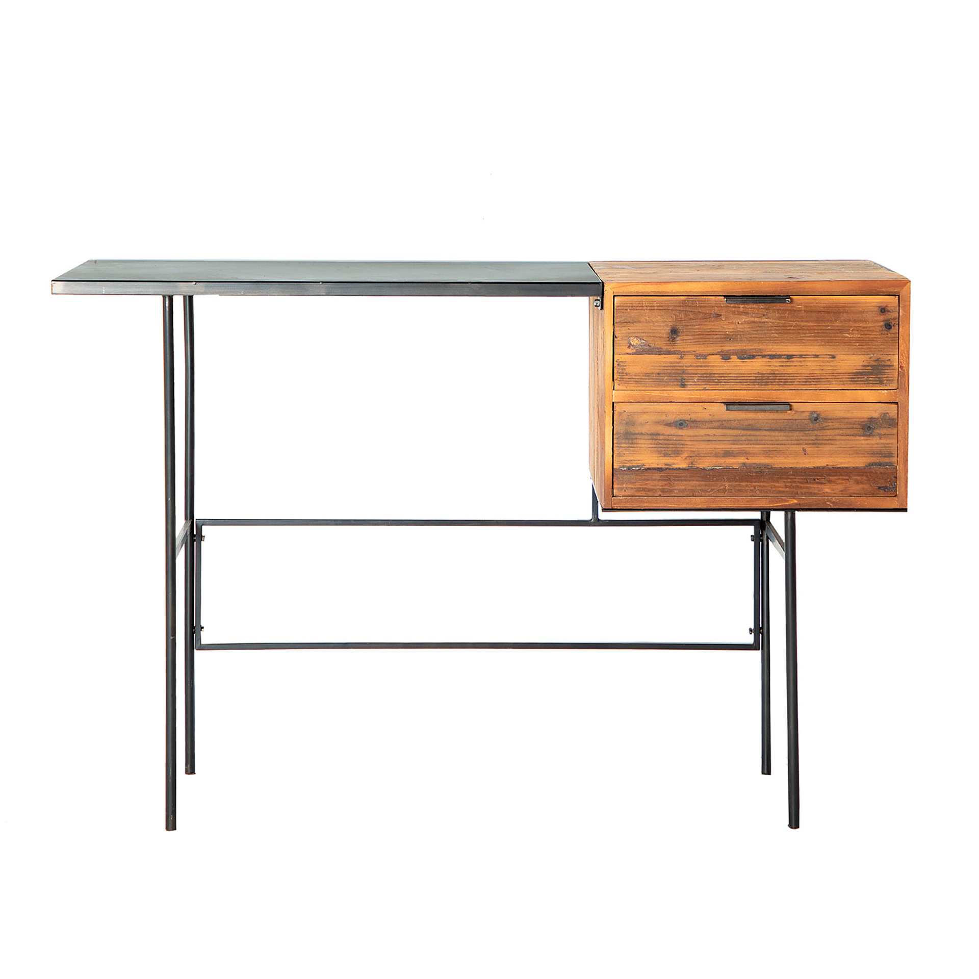 Escritorio rectangular alles de estilo industrial, fabricado en hierro en color negro, combinado con madera de abeto en color marrón. Producto desmontable.