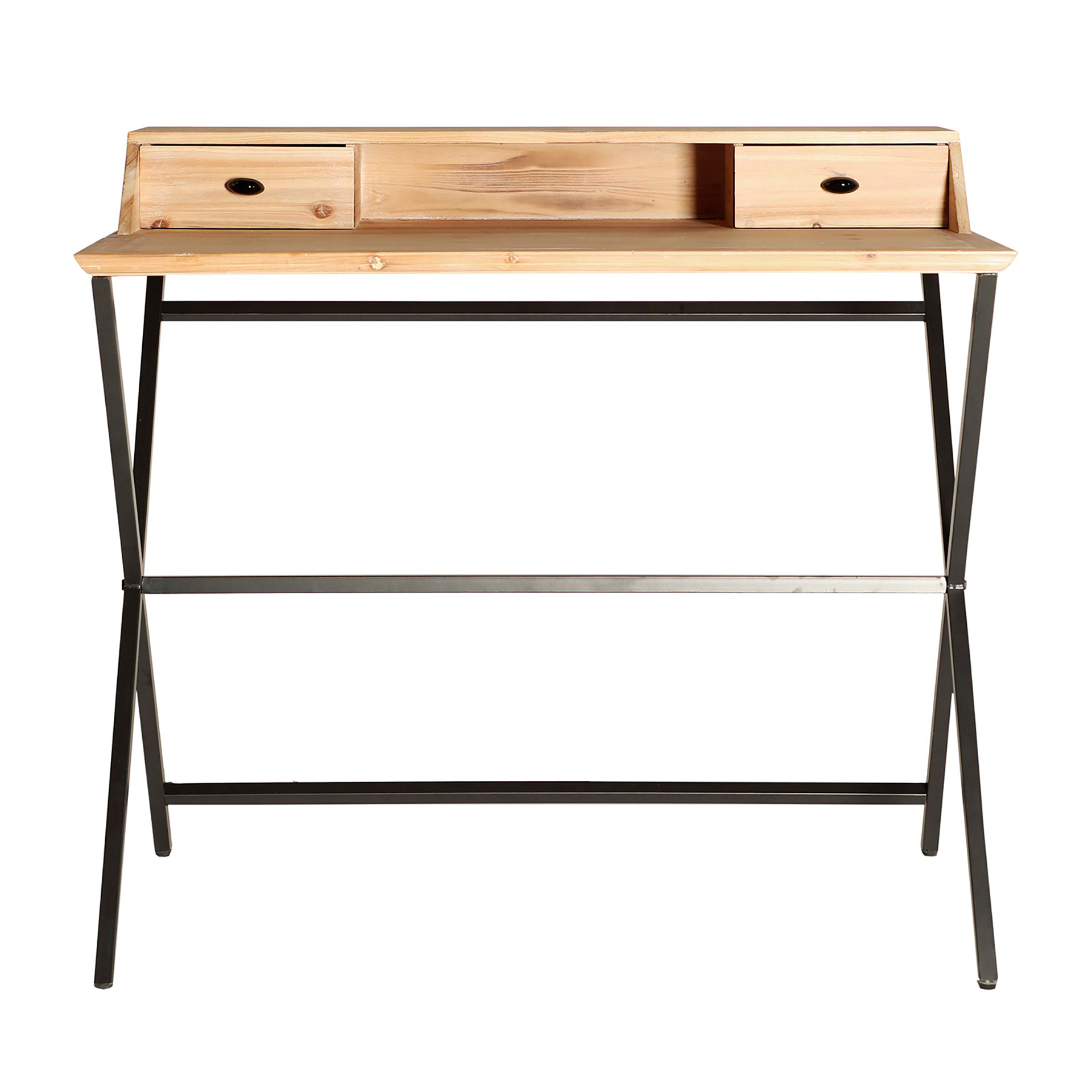 Escritorio rectangular gayles de estilo industrial, fabricado en hierro en color negro, combinado con madera de abeto en color natural. Producto desmontable.
