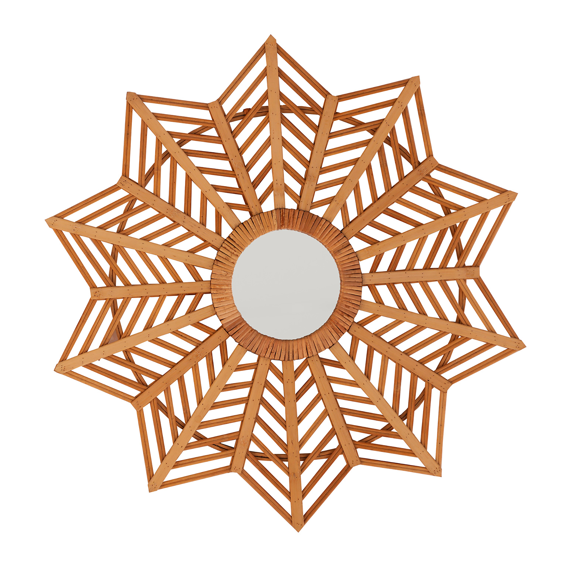 Espejo irregular arteaga de estilo boho, fabricado en bambú en color marrón, combinado con espejo.