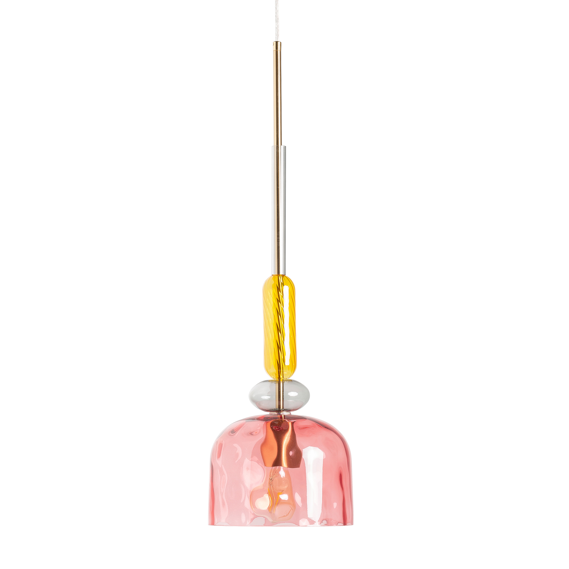 Lámpara de colgar redonda micah de estilo art deco, fabricado en vidrio en color multicolor, combinado con acero. Producto desmontable.