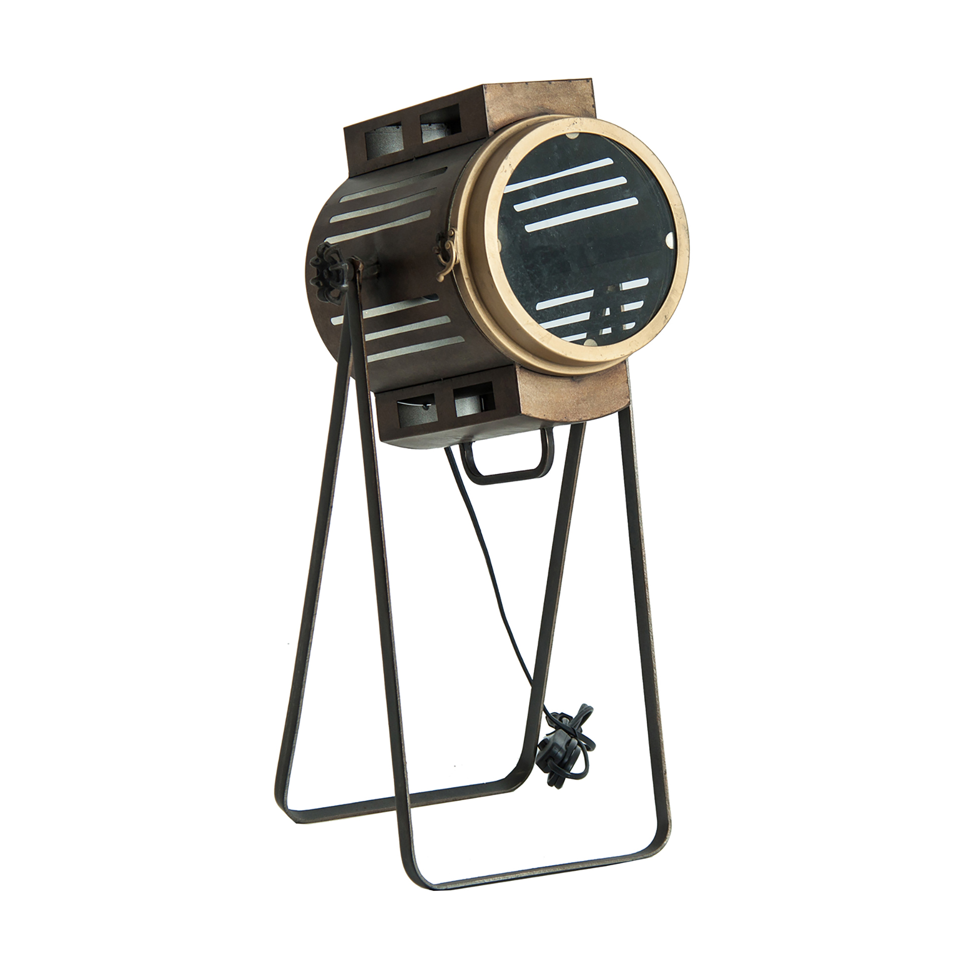 Lámpara de sobremesa cilindrica angon de estilo industrial, fabricado en hierro en color oro con acabado viejo.
