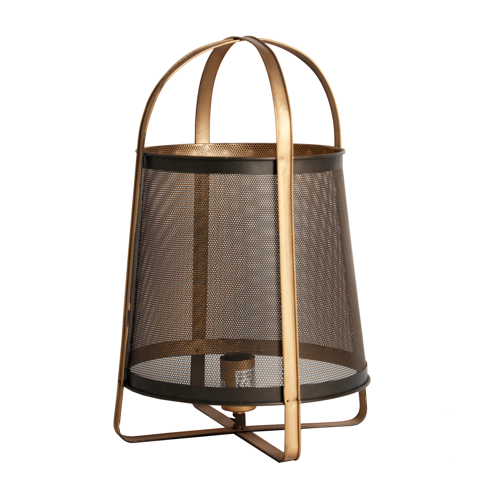 Lámpara de sobremesa redonda haide de estilo art deco, fabricado en hierro en color oro con acabado viejo.