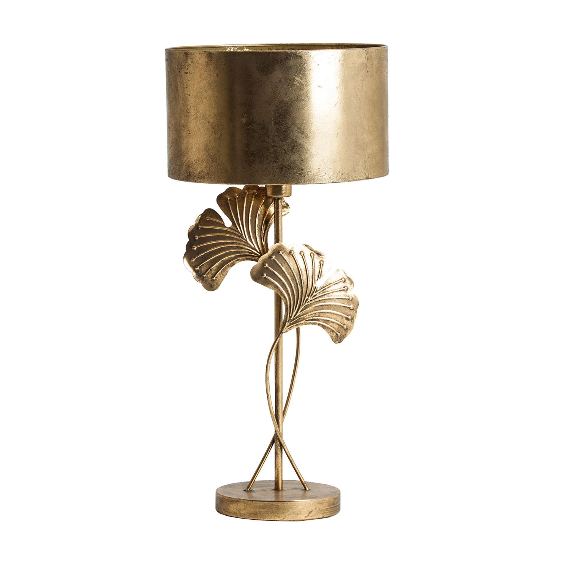 Lámpara de sobremesa redonda hojas, en color oro viejo, de estilo art deco. Fabricado en hierro. Producto desmontable.