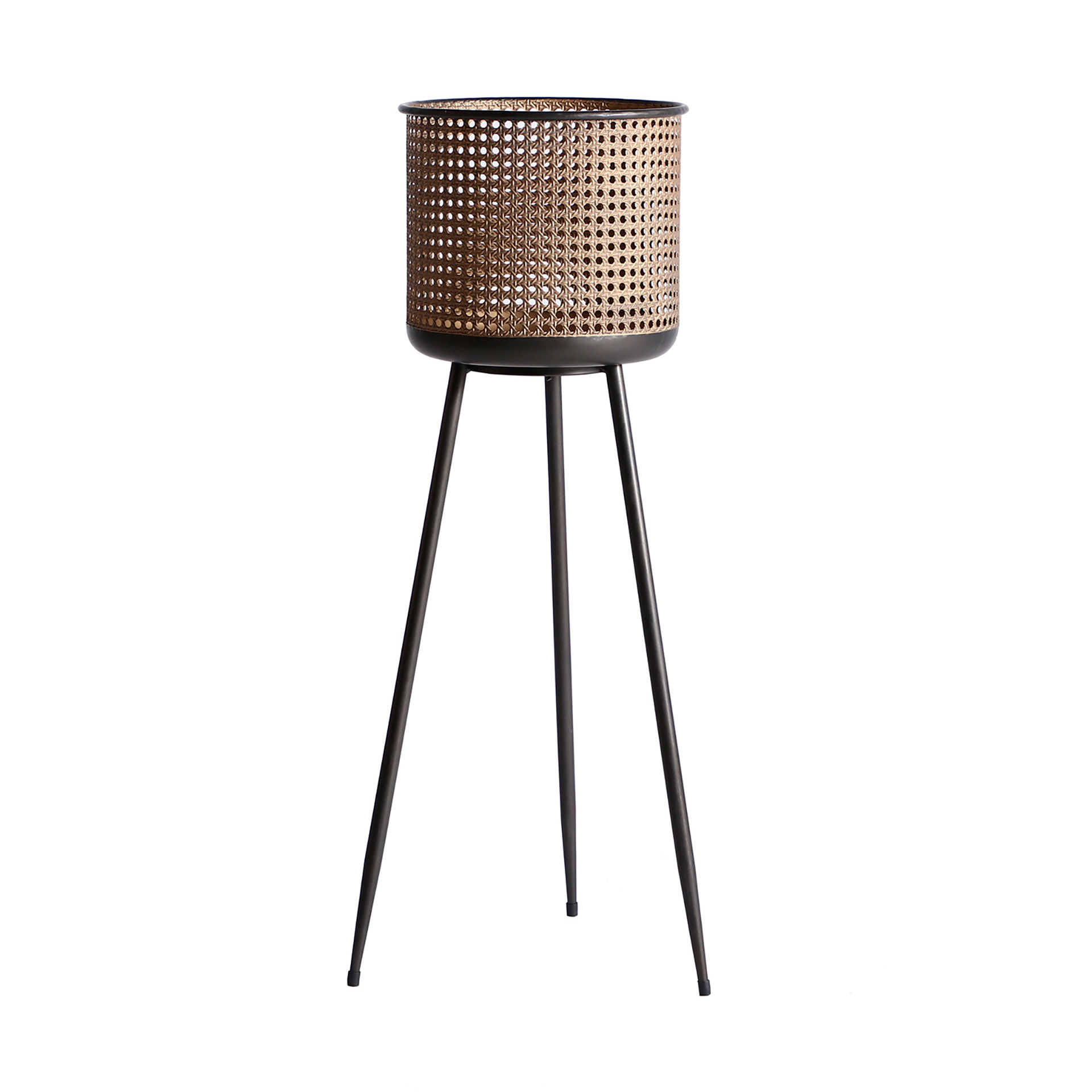 Macetero redonda bream de estilo art deco, fabricado en hierro en color negro en color oro con acabado viejo. Producto desmontable.