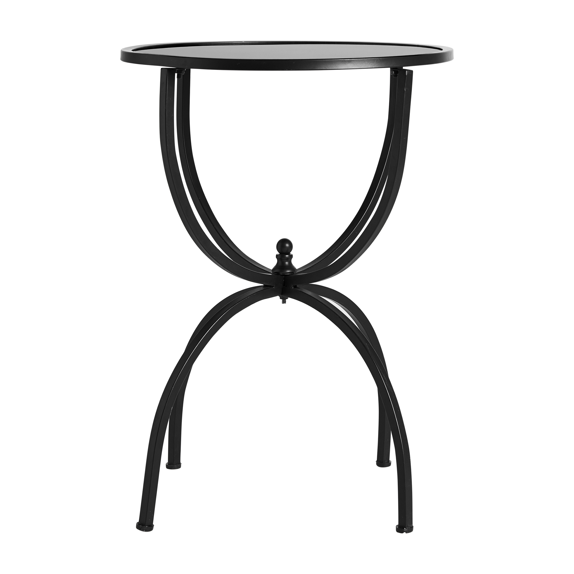 Mesa auxiliar redonda cailar de estilo industrial, fabricado en hierro en color negro, combinado con vidrio en color transparente. Negro fumé. Producto desmontable.
