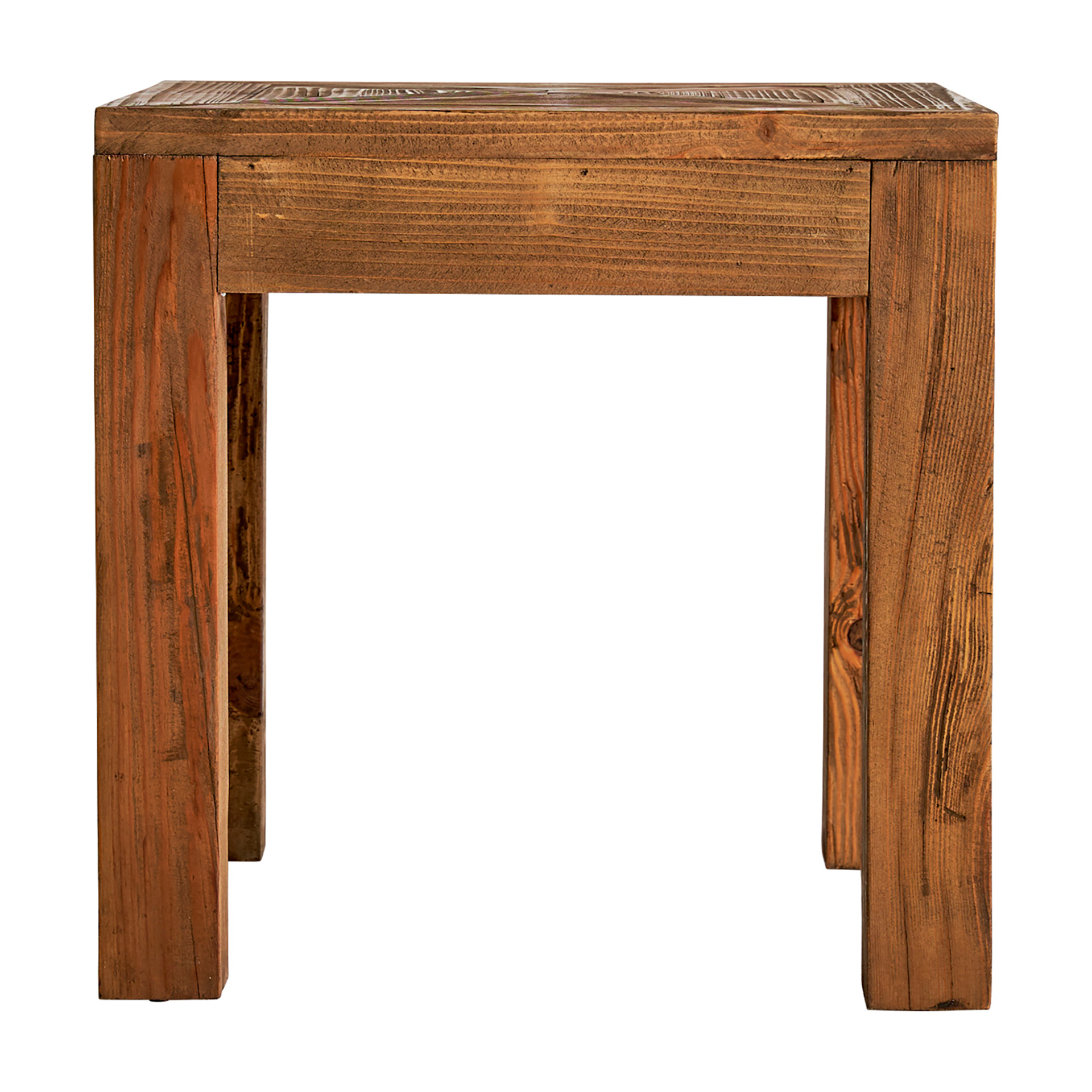 Mesa auxiliar cuadrada mens de estilo colonial, fabricado en madera de pino en color marrón. Producto desmontable.