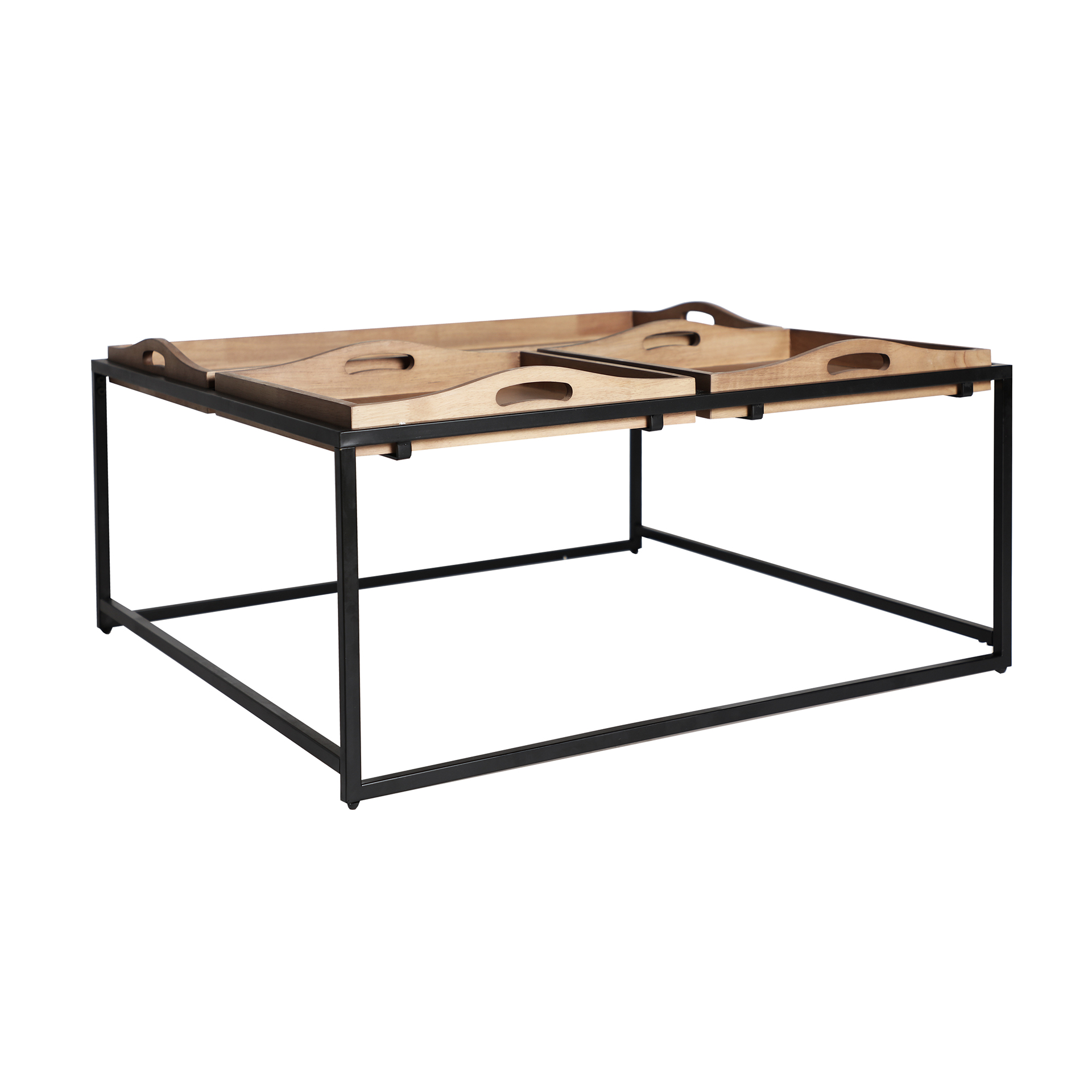 Mesa auxiliar cuadrada mornans de estilo industrial, fabricado en madera roble en color negro, combinado con acero en color natural. Producto desmontable.