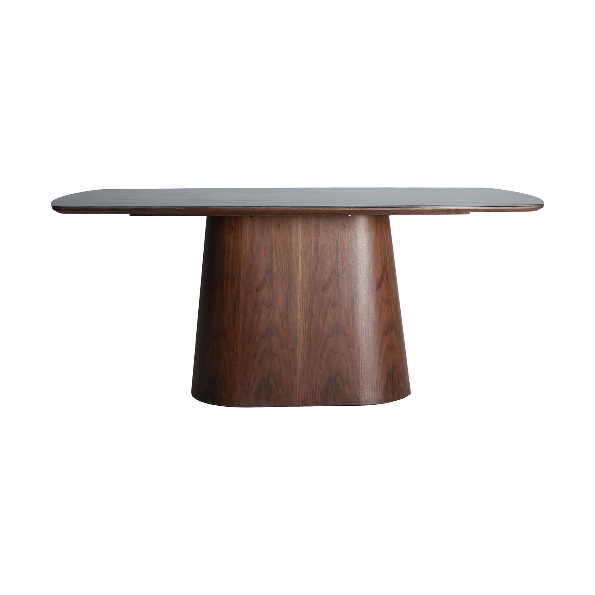 Mesa comedor Dinsac de estilo contemporáneo, fabricado en cerámica en color negro, combinado con melamina en color marrón y madera dm en color marrón.