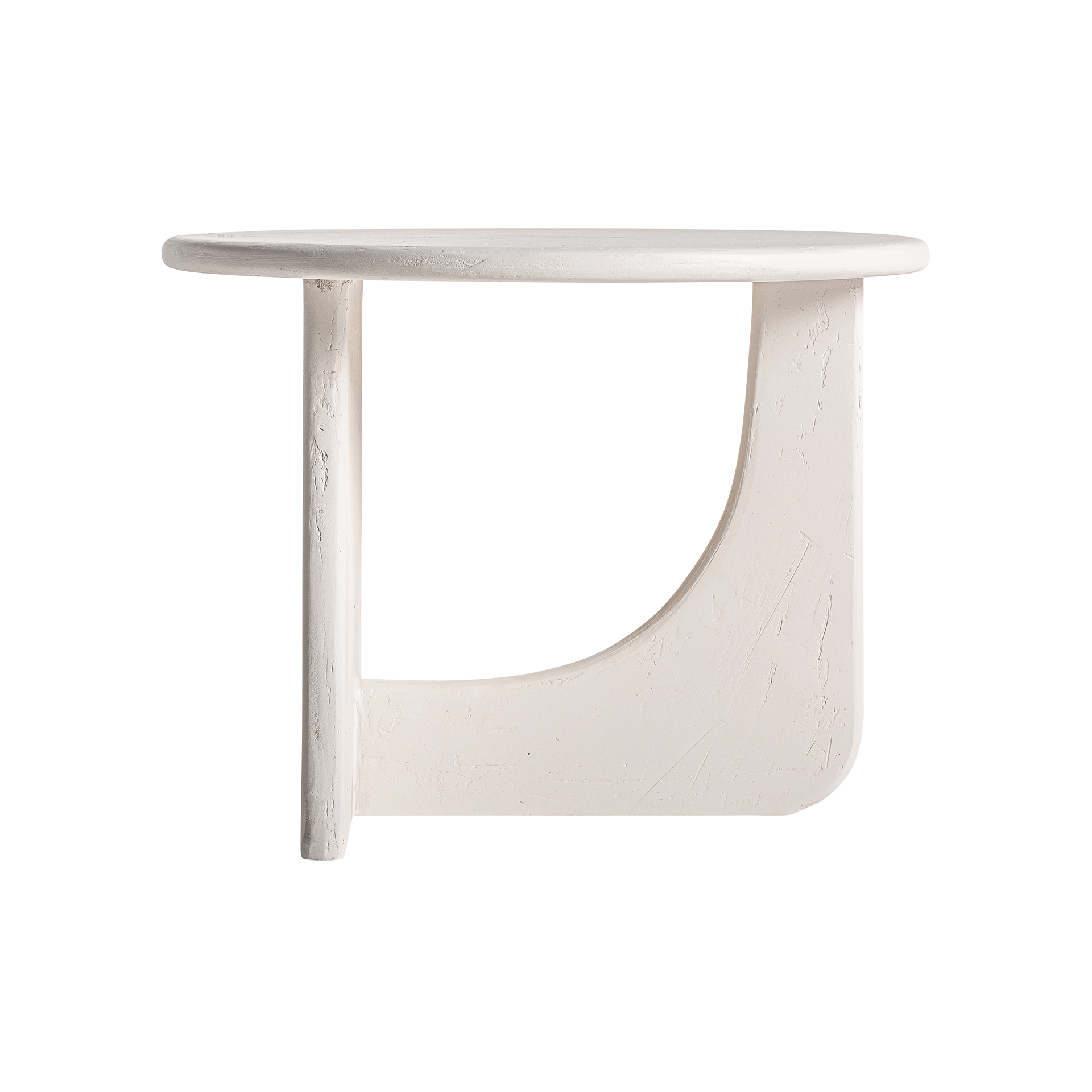 Mesa de centro redonda inha de estilo contemporáneo, fabricado en madera de mango en color blanco roto, combinado con madera dm.