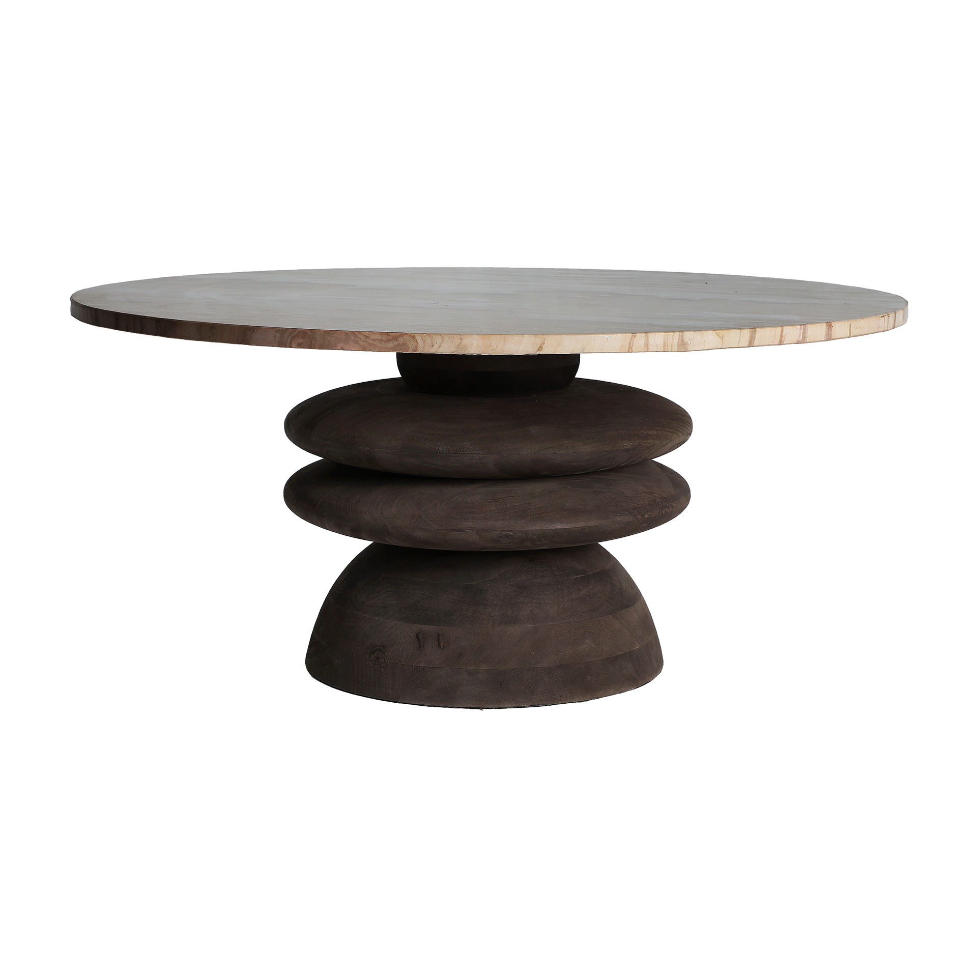 Mesa de centro redonda vrads de estilo contemporáneo, fabricado en madera de mango en color marrón, combinado con mármol en color tonos en marrón.
