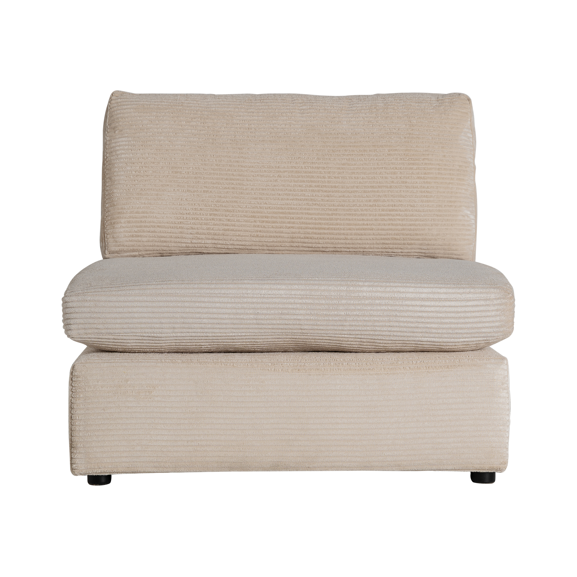 Módulo sofá central cuadrado klerken de estilo art deco, fabricado en poliéster en color crema con acabado liso, combinado con madera contrachapada en color marrón con acabado natural y espuma. Relleno: mezcla de espuma, pluma y fibra de poliéster. . Compatible con: 33525,35527,35528.