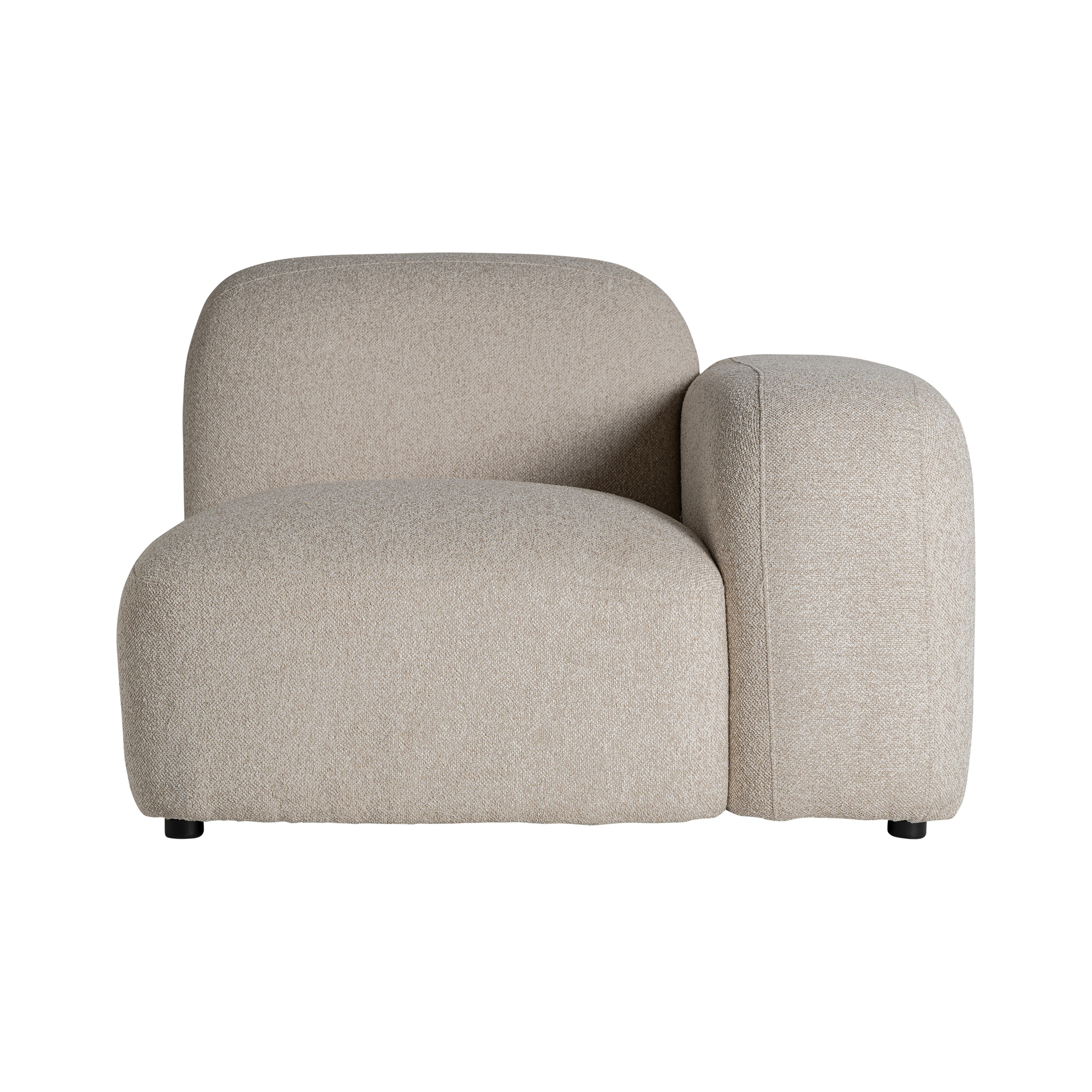 Módulo sofá esquinero Ceyrat de estilo art deco, fabricado en poliéster en color crema con acabado jaspeado, combinado con madera contrachapada en color marrón con acabado natural. Compatible con: 35521,35522,35520.