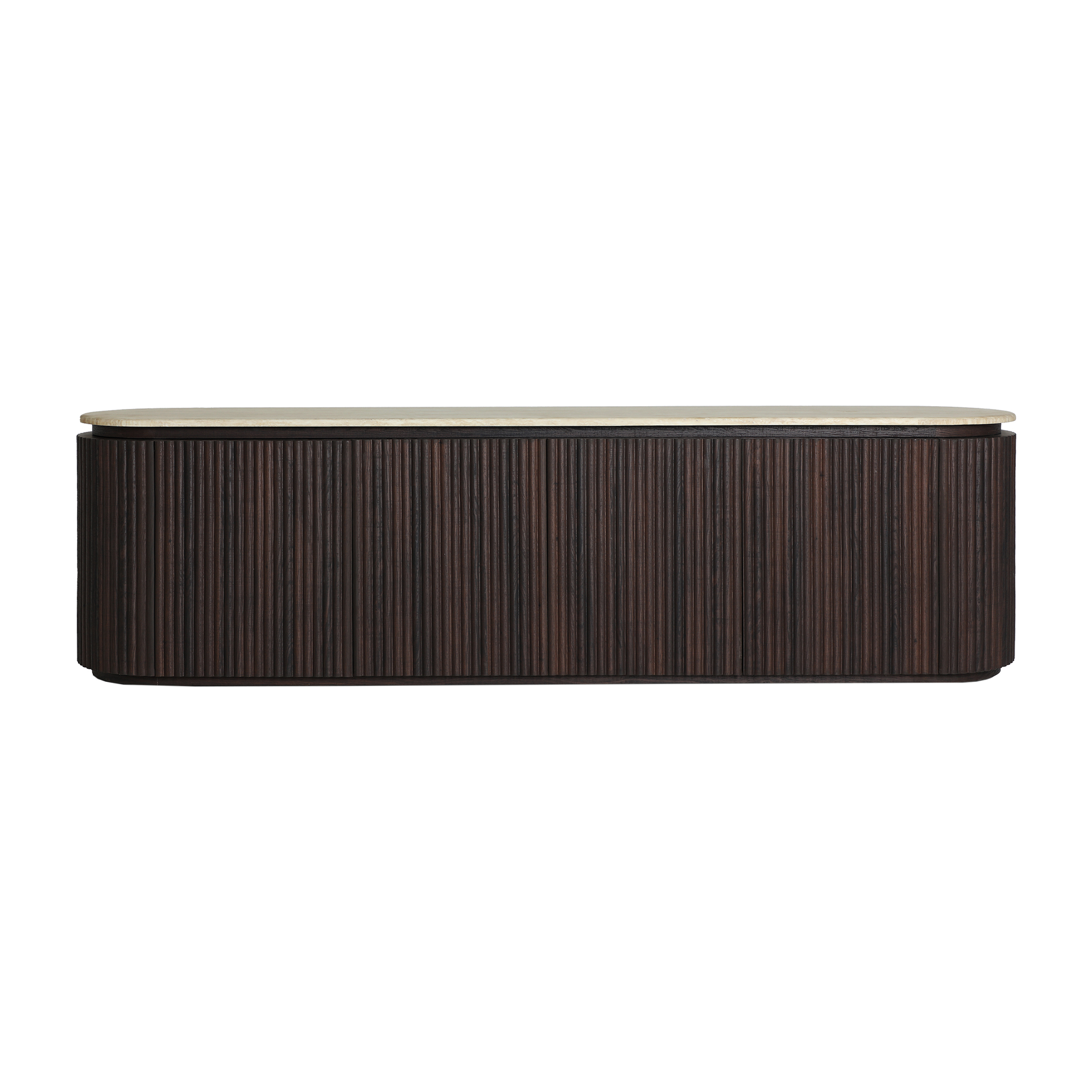 Mueble tv Verona de estilo contemporáneo, fabricado en madera dm en color marrón, combinado con mármol sintético en color beige.